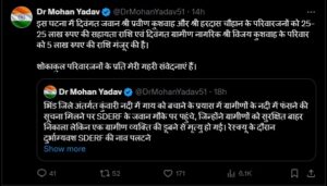 उन्होंने X पर लिखा -” इस घटना में दिवंगत जवान प्रवीण कुशवाह और हरदास चौहान के परिवारजनों को 25-25 लाख रुपए की सहायता राशि एवं दिवंगत ग्रामीण नागरिक विजय कुशवाह के परिवार को 5 लाख रुपए की राशि मंजूर की है। ”